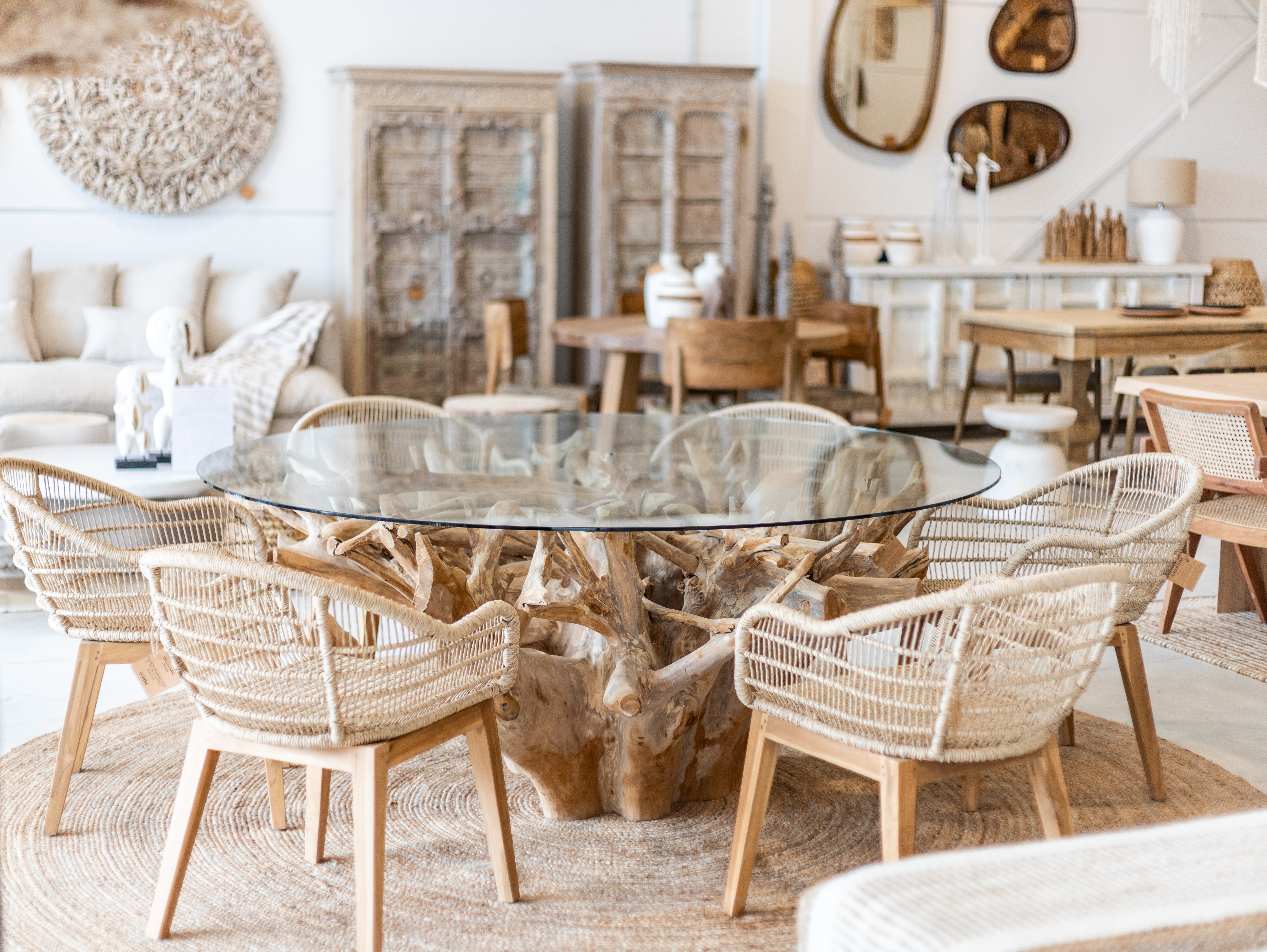 Natural teak roots transformed into timeless statement tables.