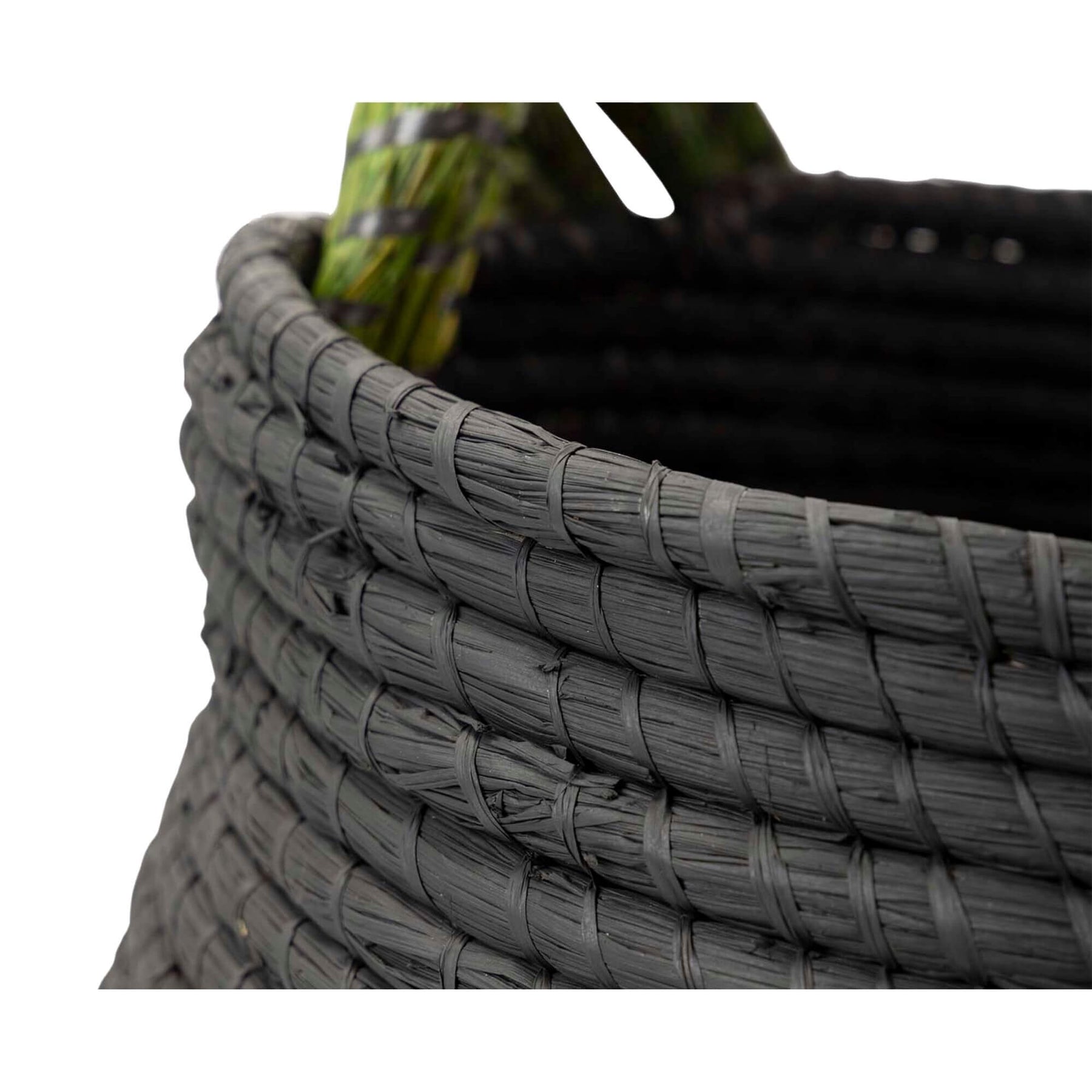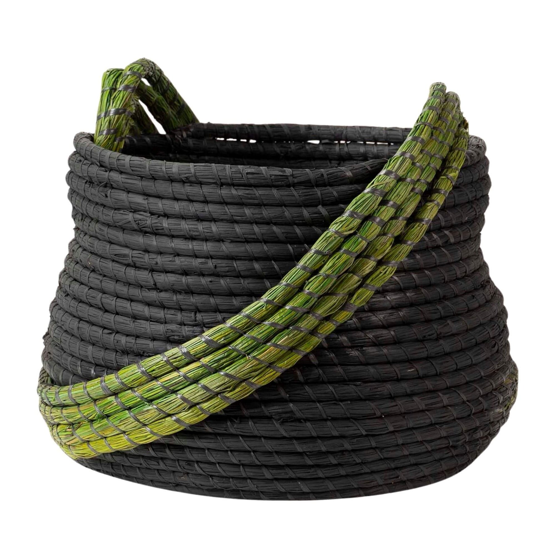 The Yachar Basket in black and green brings a bold, natural aesthetic to your home. Crafted by hand from durable seaweed, it features a striking green braided rim that adds a fresh, contemporary touch to its earthy texture.