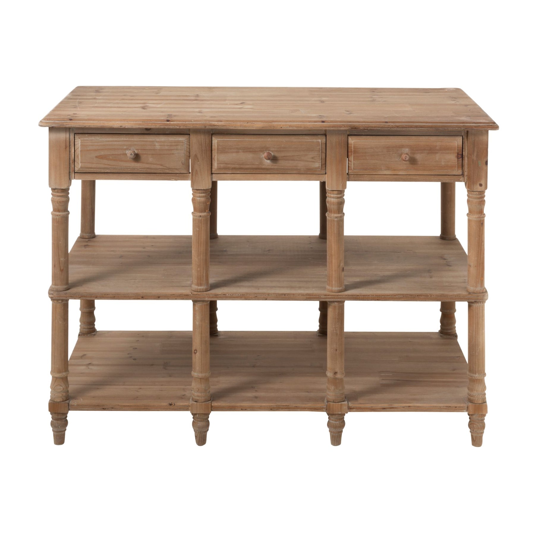 This hand crafted console will definitely enlight the aura of your home. Besides from its large top, it has 3 drawers for additional storage. And, 2 functional  shelves.