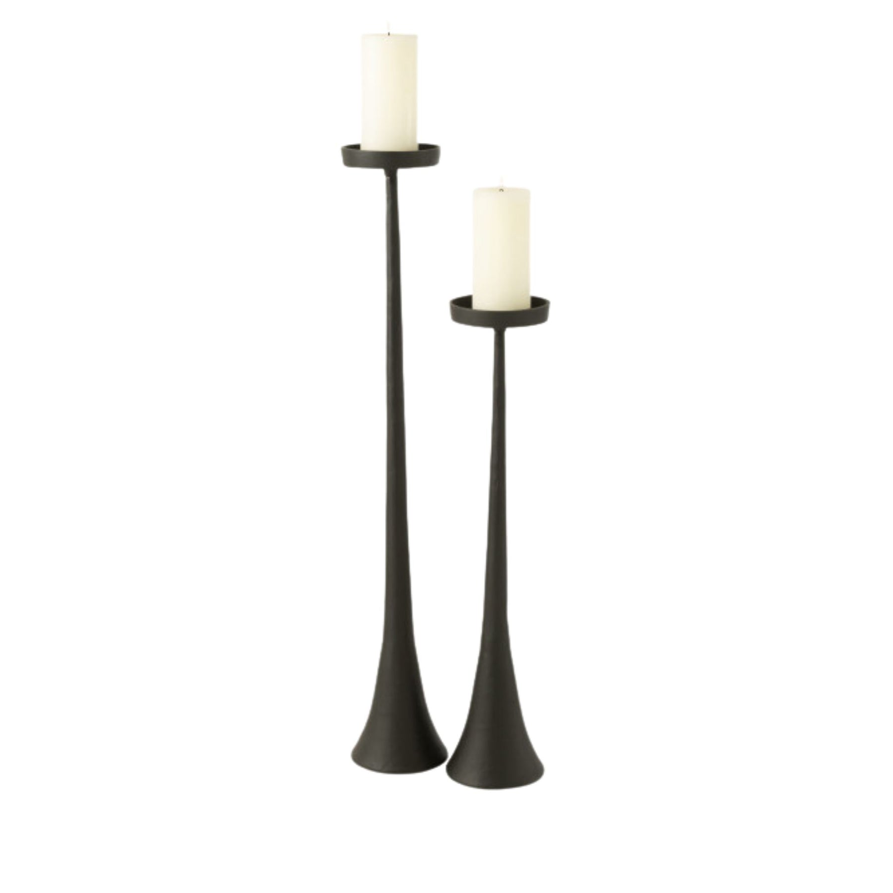 Group view of Black Candle Stands in two heights showcasing their slender metal silhouettes and matte black finish.