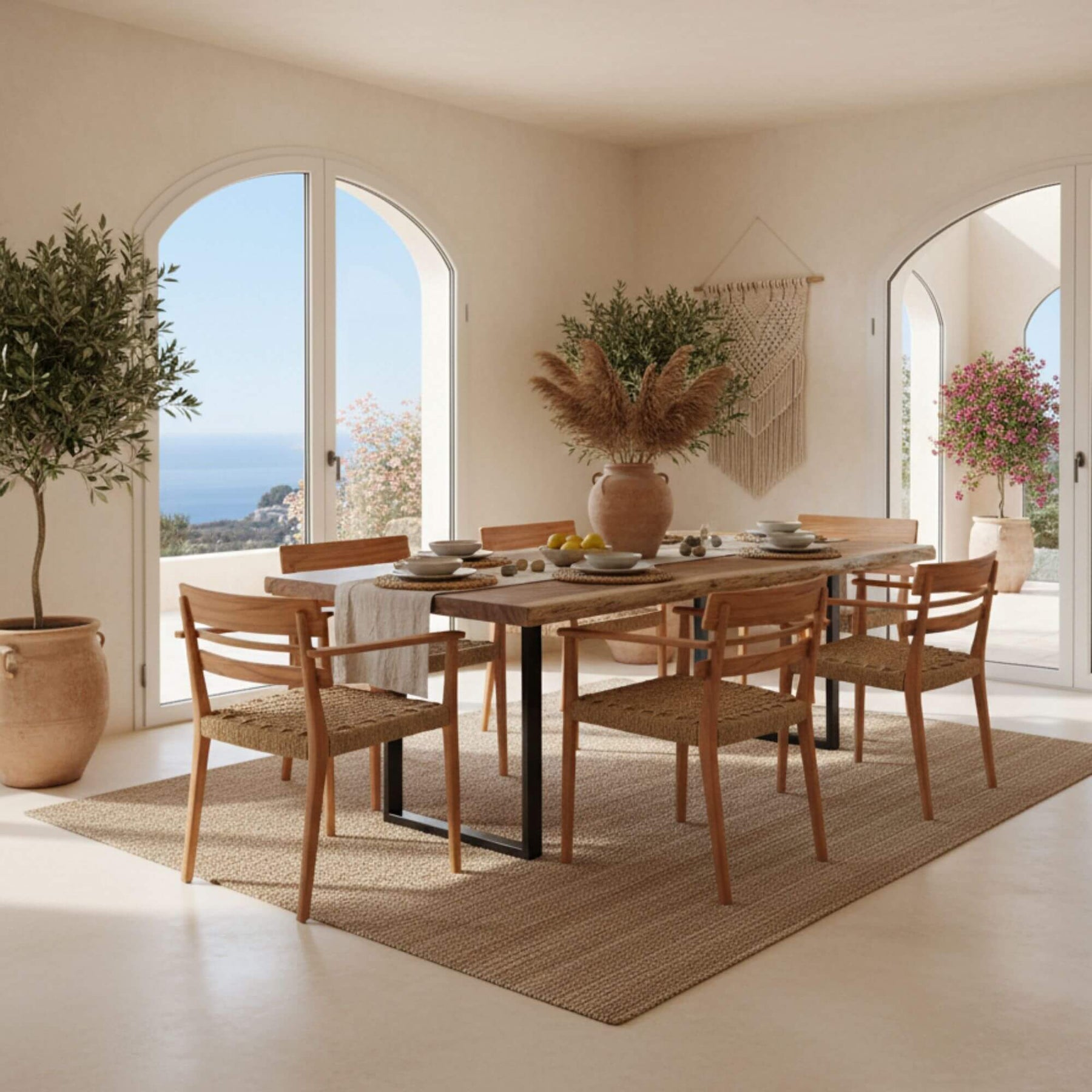 Cozy indoor setting with Nuva teak wood dining chair and Motu nui suar wood dining table