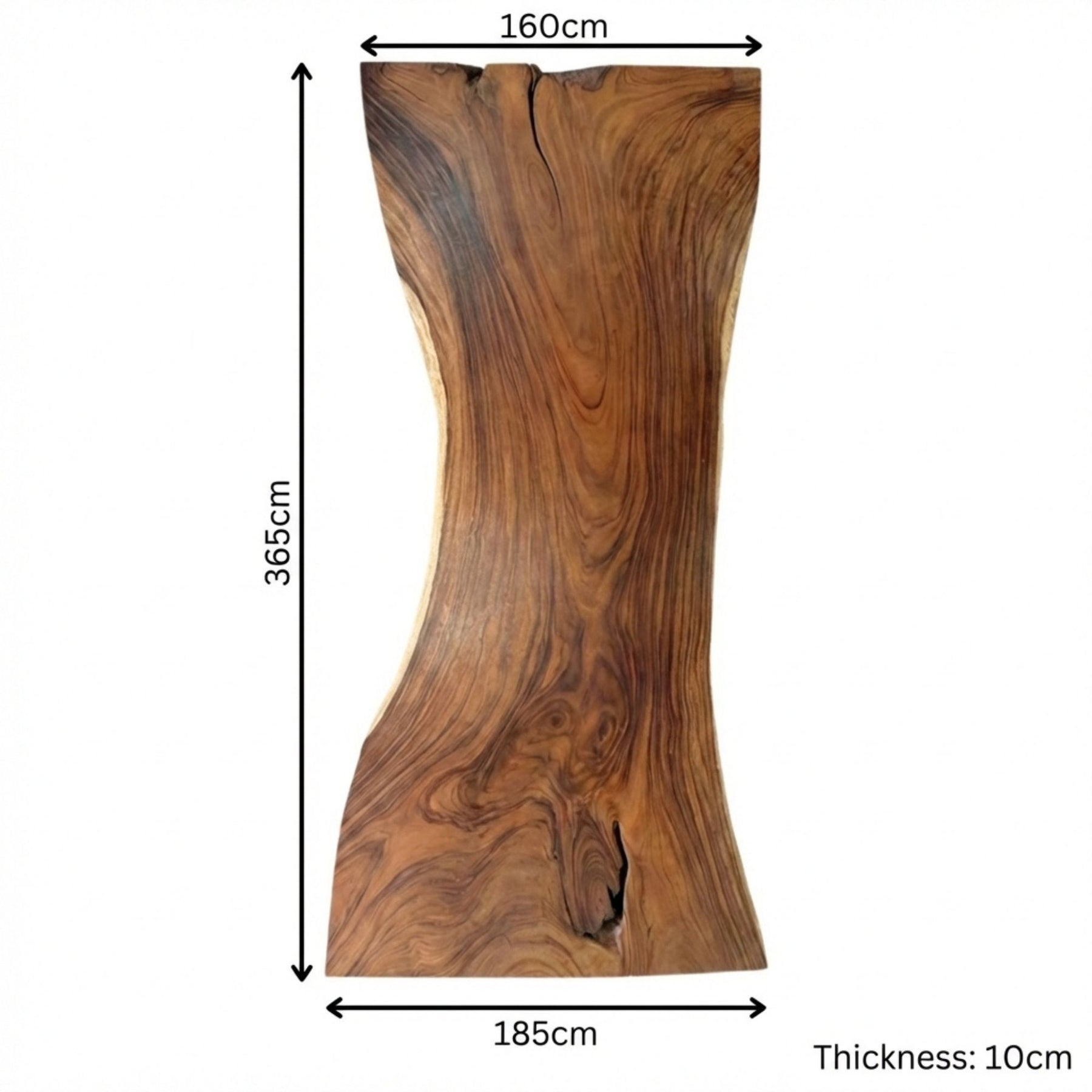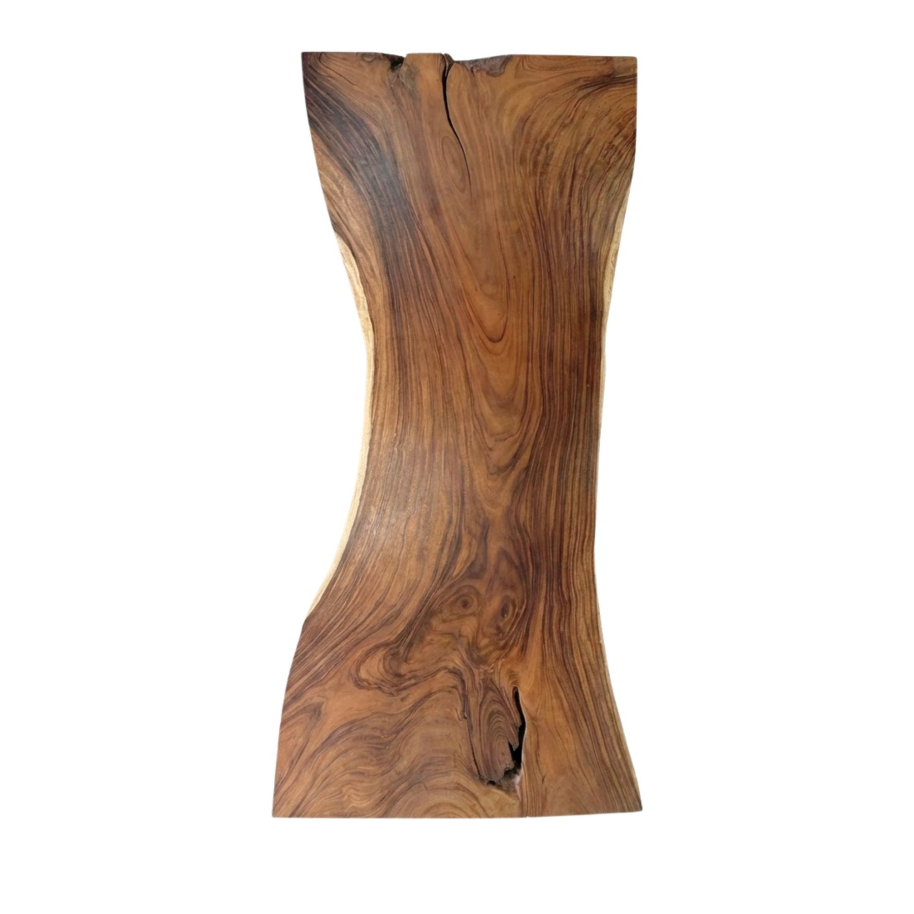 The Motu Nui Suar Wood Dining Table is a statement piece defined by its impressive scale and organic live-edge form. Crafted from a single slab of suar wood, the tabletop showcases dramatic natural grain patterns, flowing lines, and authentic cracks that celebrate the raw beauty of the material.