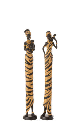 Decorative statue Val girl deco of a woman with zebra-patterned dress and headpiece, standing next to a textured vase.