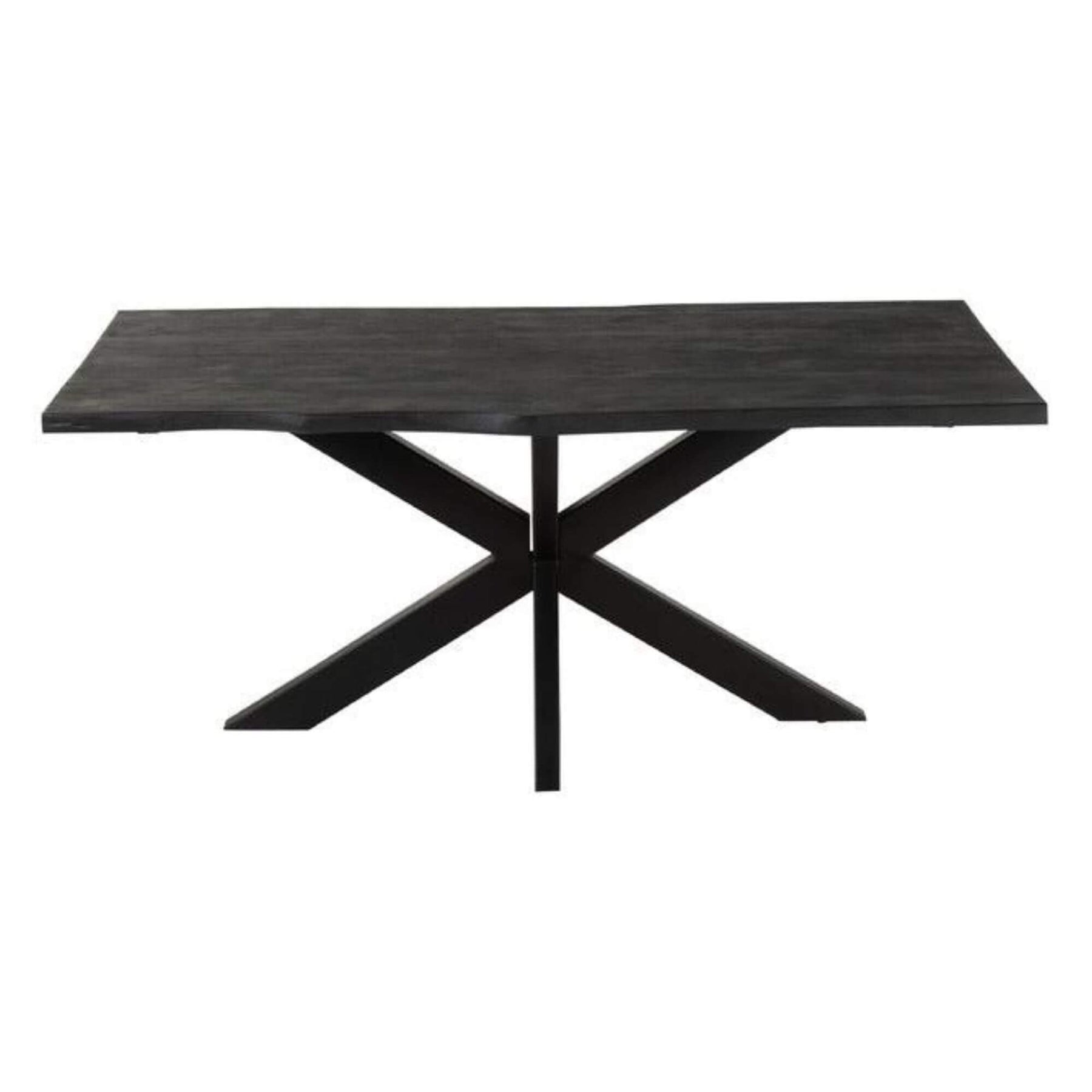 Side view of the 180 cm Black Acacia Dining Table highlighting the live-edge style top.
