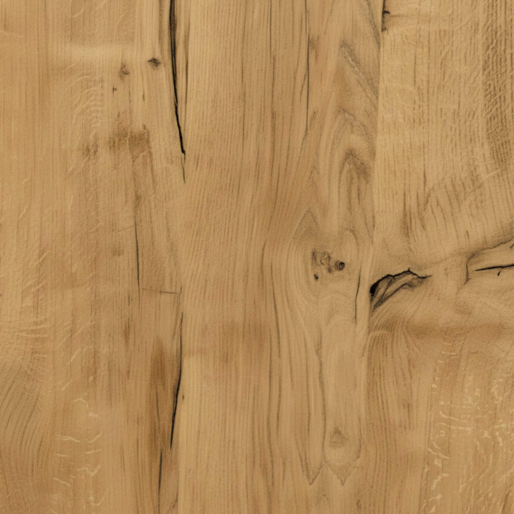 Close-up of the live-edge oak tabletop showing natural grain and texture.