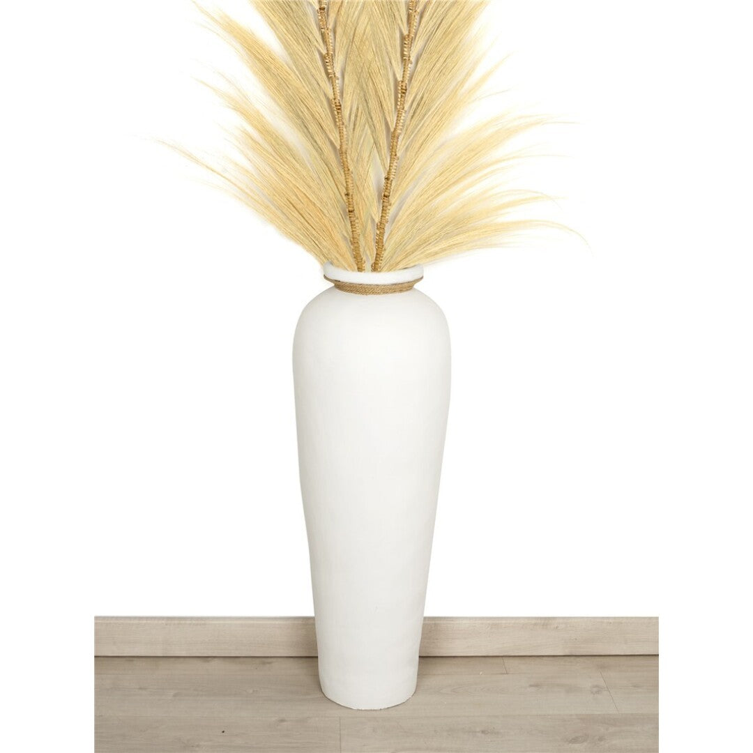 Constructed from terracota. Finished in natural white tones. Suitable for indoor and outdoor use. Decorative Jute around the top of the vase.