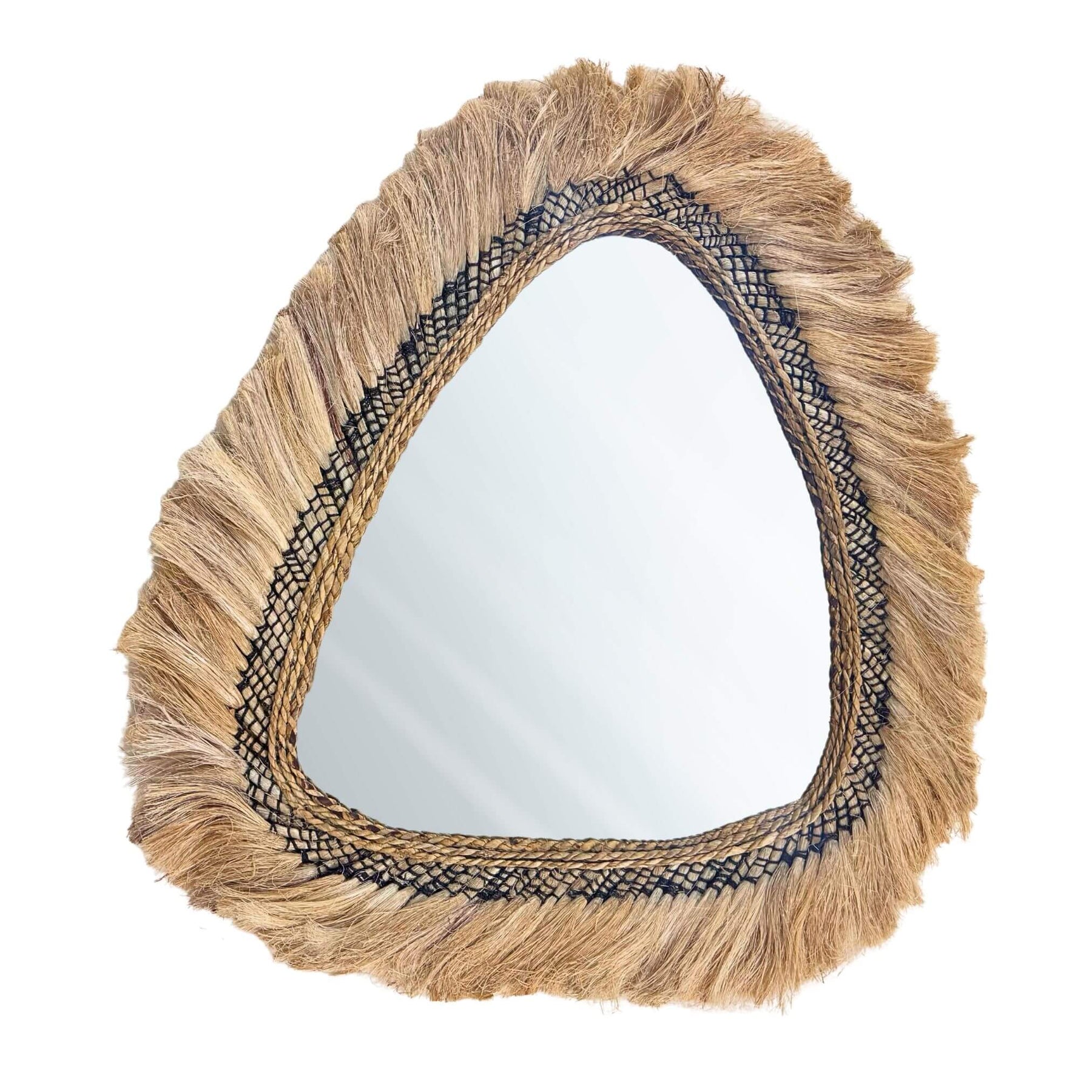 The Gemilang Mirror is a captivating blend of organic materials and artisan craftsmanship. Featuring a teardrop-inspired shape framed in natural abaca and sisal, it brings a warm, textural touch to your interiors. The intricate handwoven edge detailing adds a hint of tropical elegance, making it a statement piece for coastal, bohemian, or nature-inspired spaces.