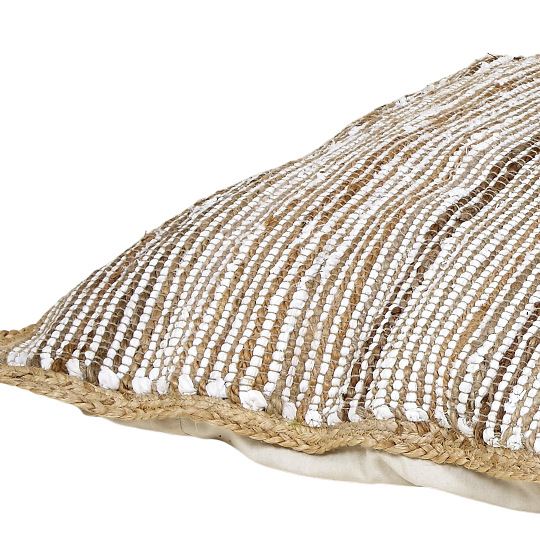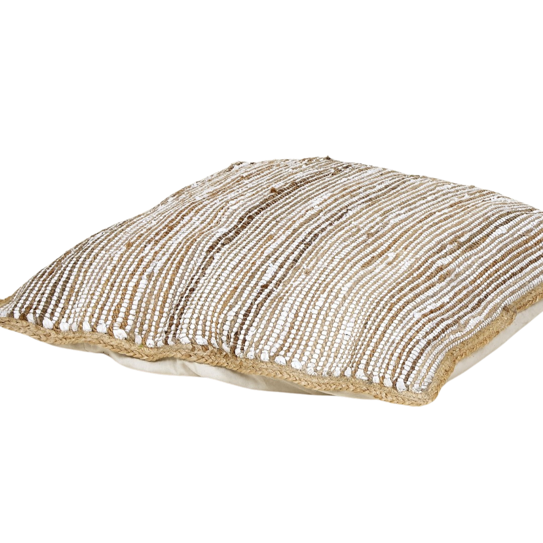 This handcrafted jute cushion features a natural woven texture with a stylish contrast border, adding a rustic yet elegant touch to any space. Made from durable and eco-friendly jute fiber, it provides both comfort and aesthetic appeal.