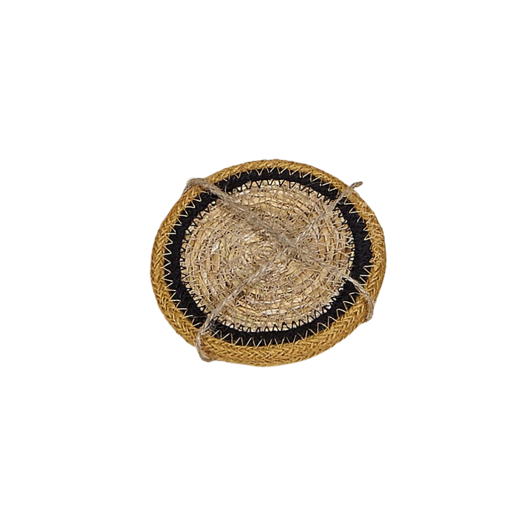 STRAW COASTER S/4 | MUSTARD/BLACK/NATURAL 10CM
