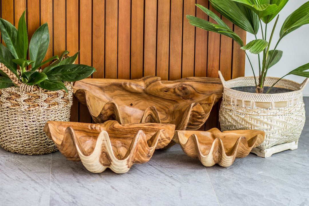 TRIDACNA - CARVED WOODEN SEASHELL SCULPTURE