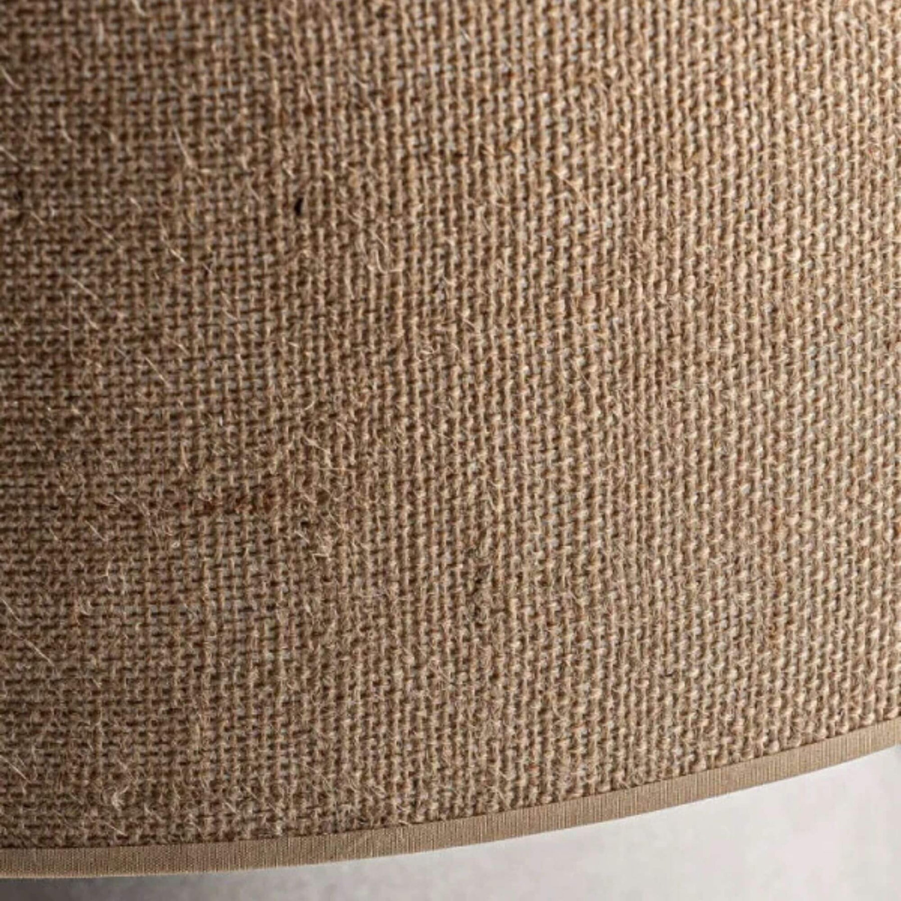 Close-up of ET Lamp showing textured  woven jute lampshade.