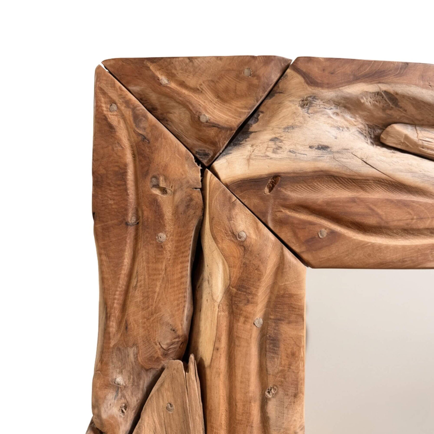 The Male Square Mirror is a striking statement piece crafted from reclaimed teak wood, combining natural texture and clean lines to elevate any interior with timeless character.