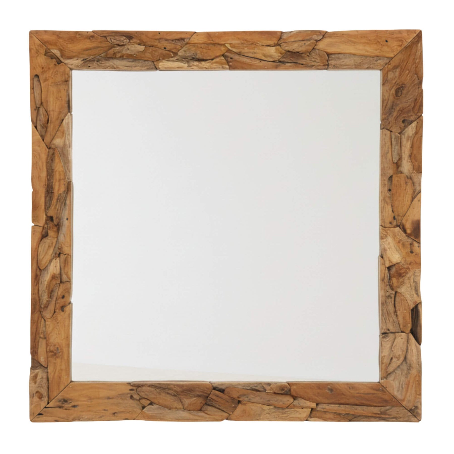 Front view of the Large Male Square Mirror made from natural reclaimed teak wood.