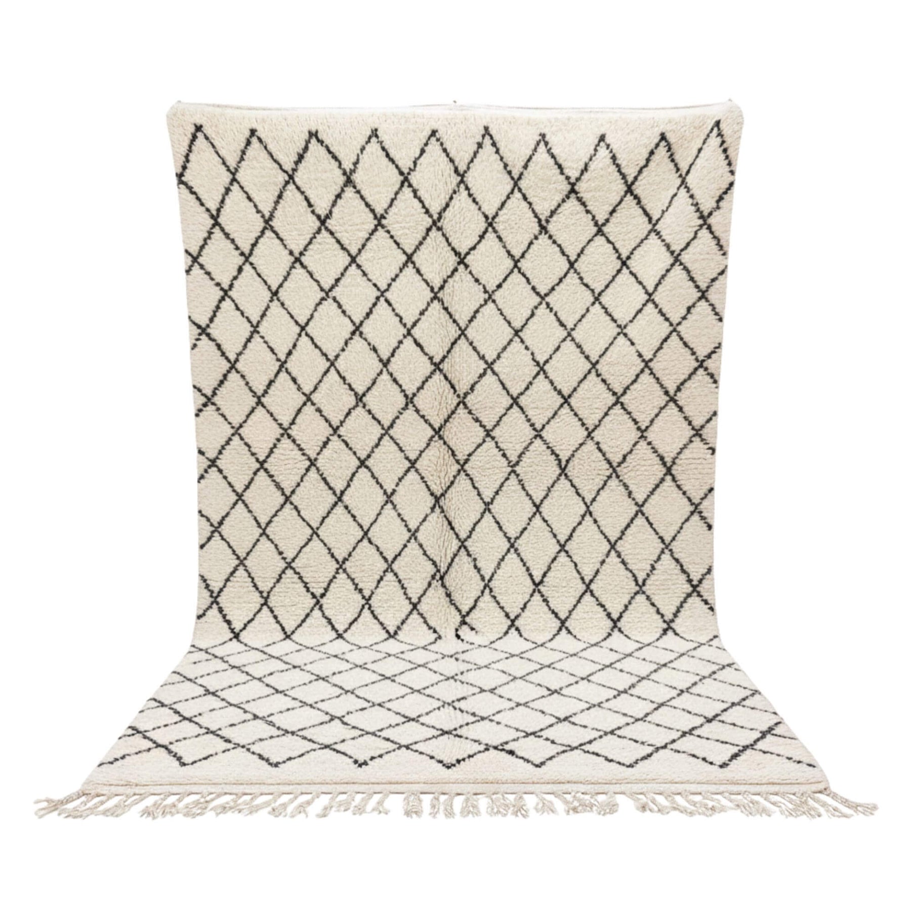 Front view of the Moroccan Rug in cream wool with black diamond pattern.