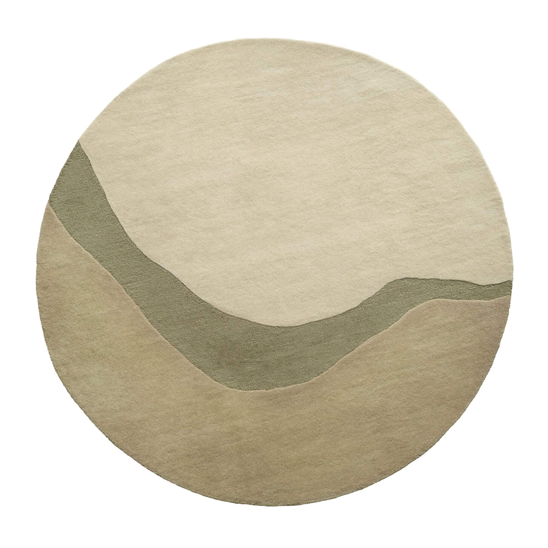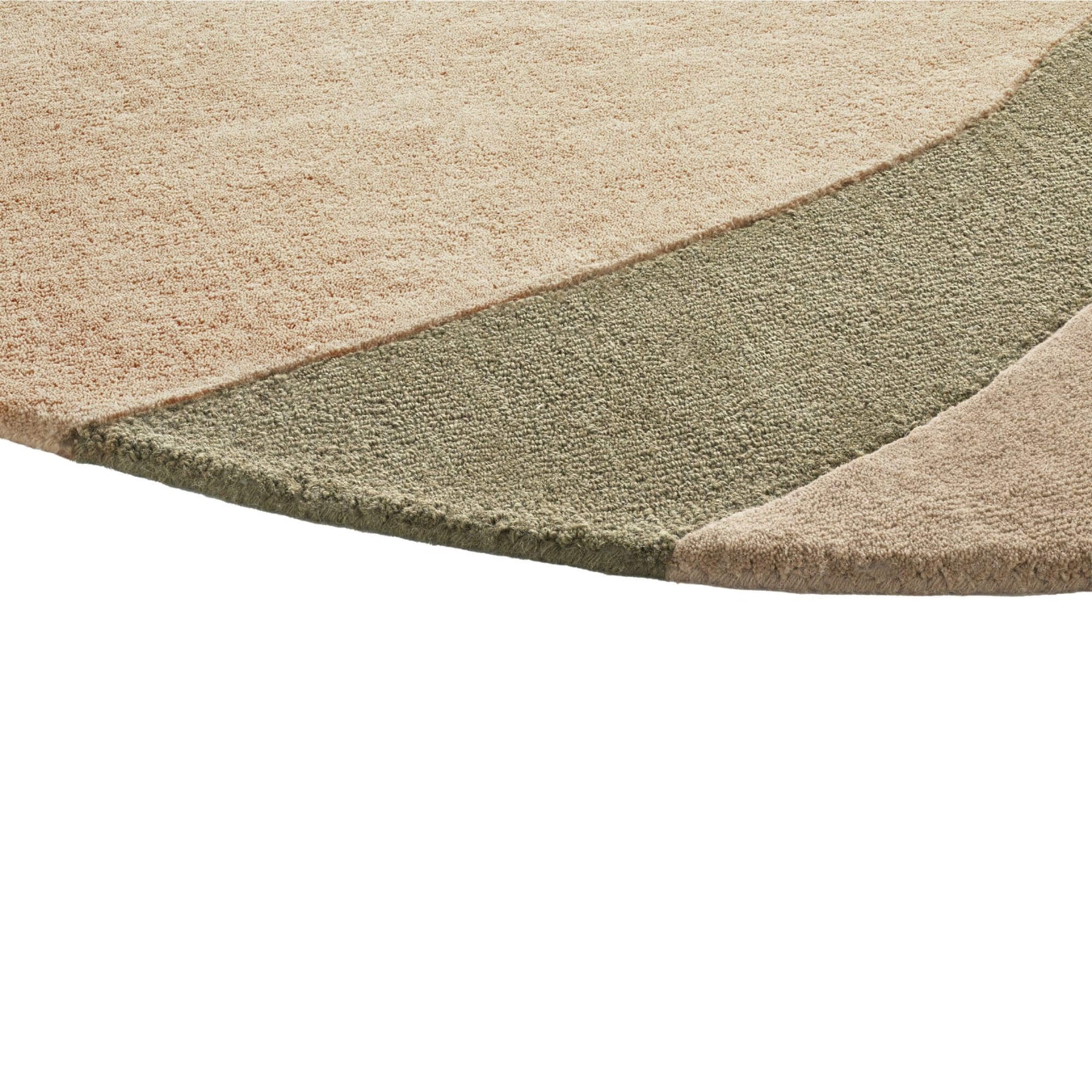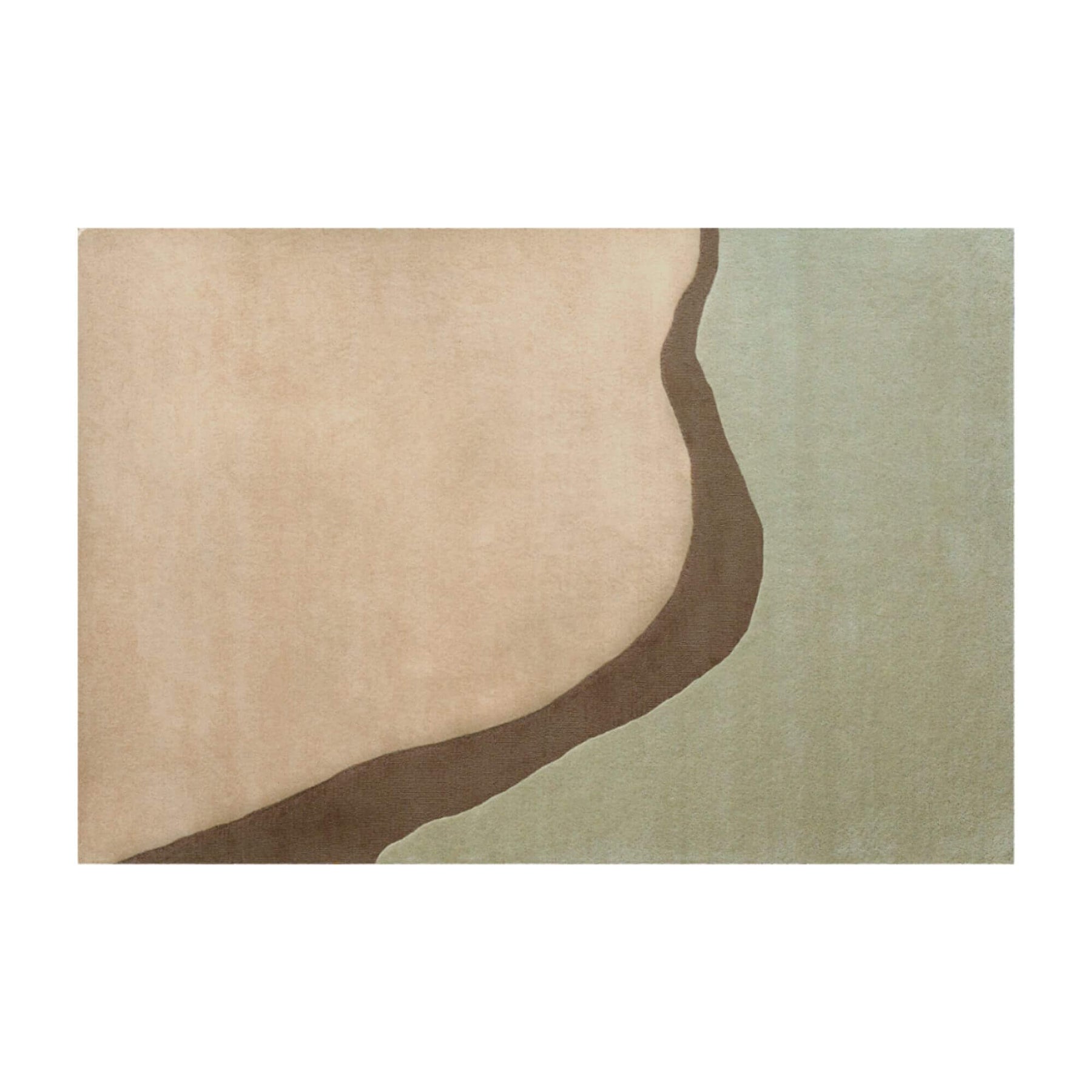 Front view of the Khaki Figari wool rug with soft flowing design in neutral tones.