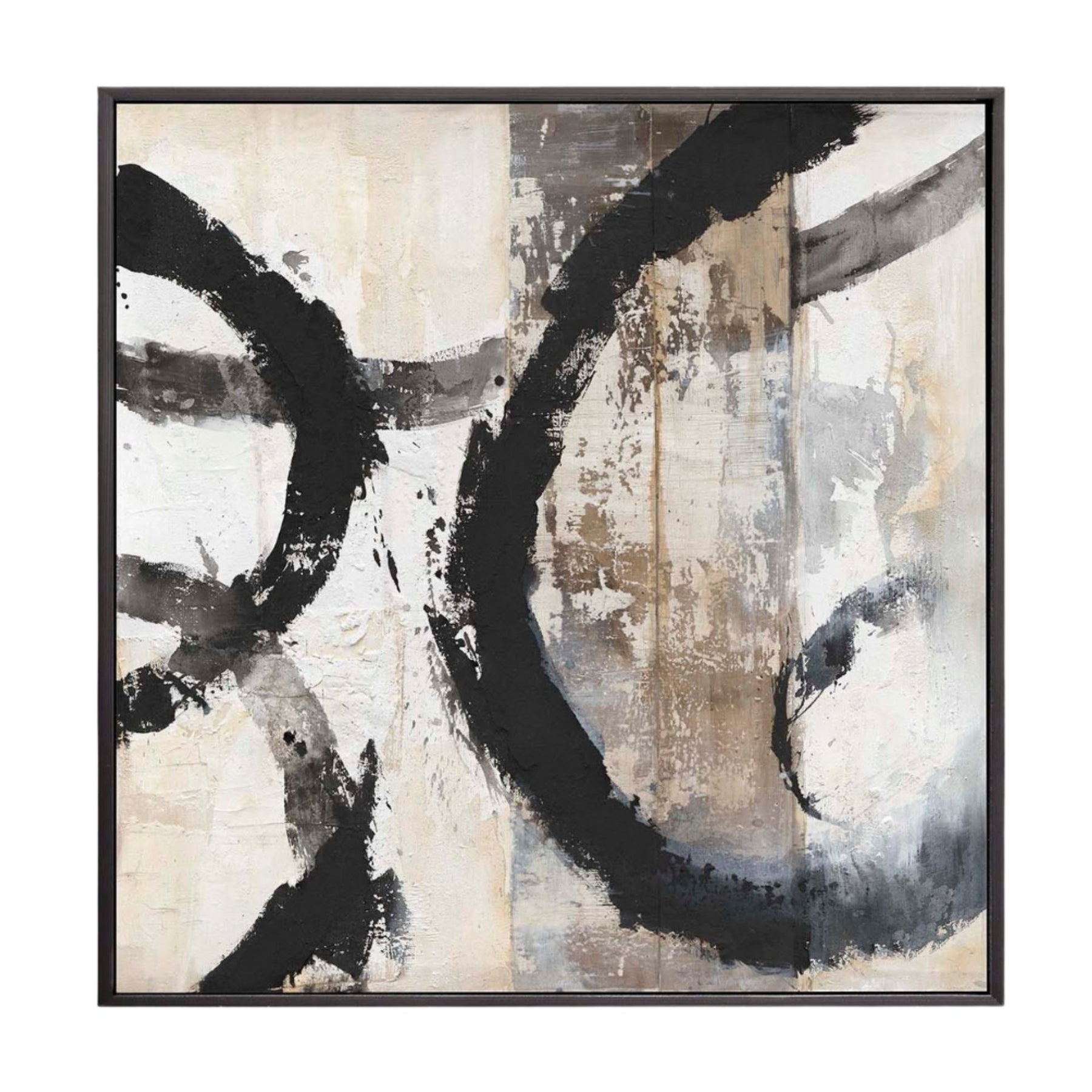 The Nimbo Painting expresses abstract movement and raw texture through bold black brushstrokes on a neutral, layered background. Each stroke reveals depth and emotion, creating a dynamic yet balanced composition. Perfect for contemporary interiors that appreciate minimalism, contrast, and the beauty of imperfection.