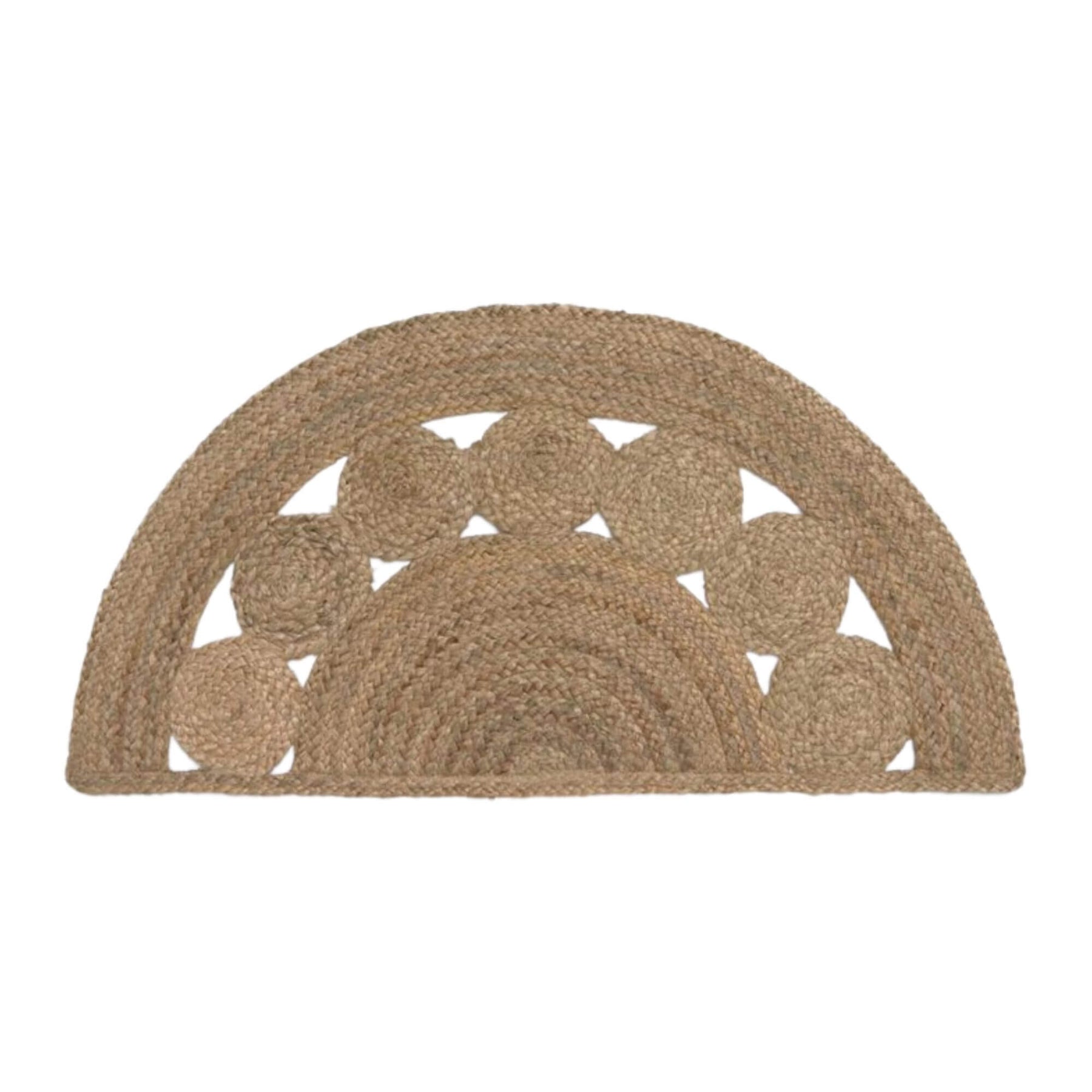 Jute Round Wall Deco Headboard handwoven from natural fibers with semi-circular braided design.