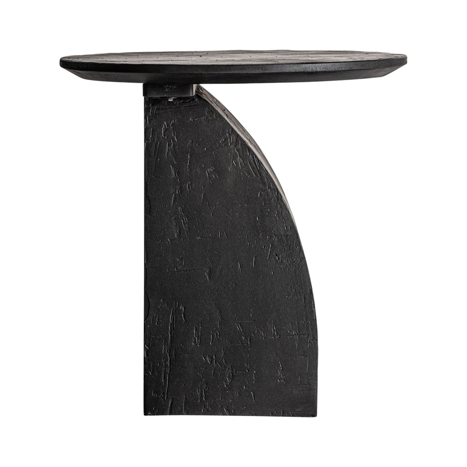 Side profile of the Burleigh side table highlighting its bold architectural silhouette.