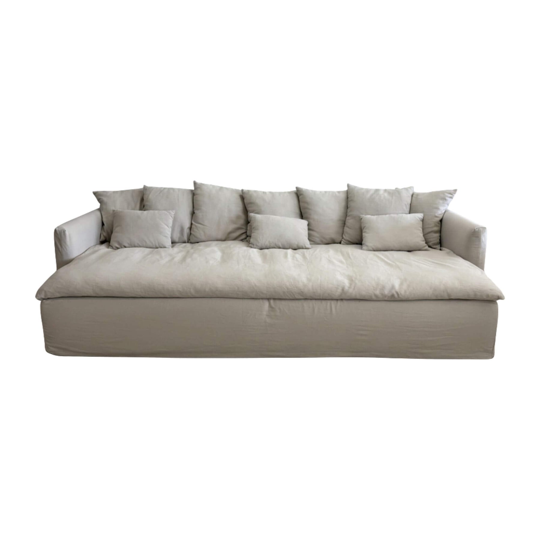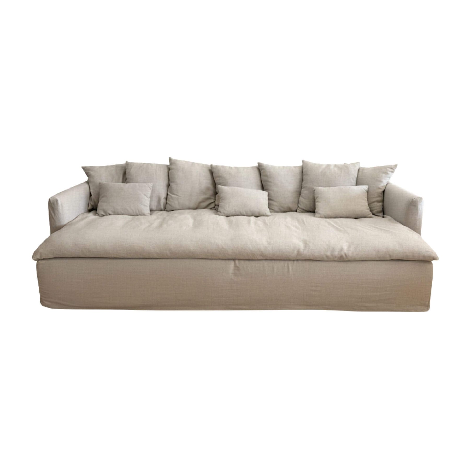 Cala Bianca Sofa in natural 100% linen with spacious seating.