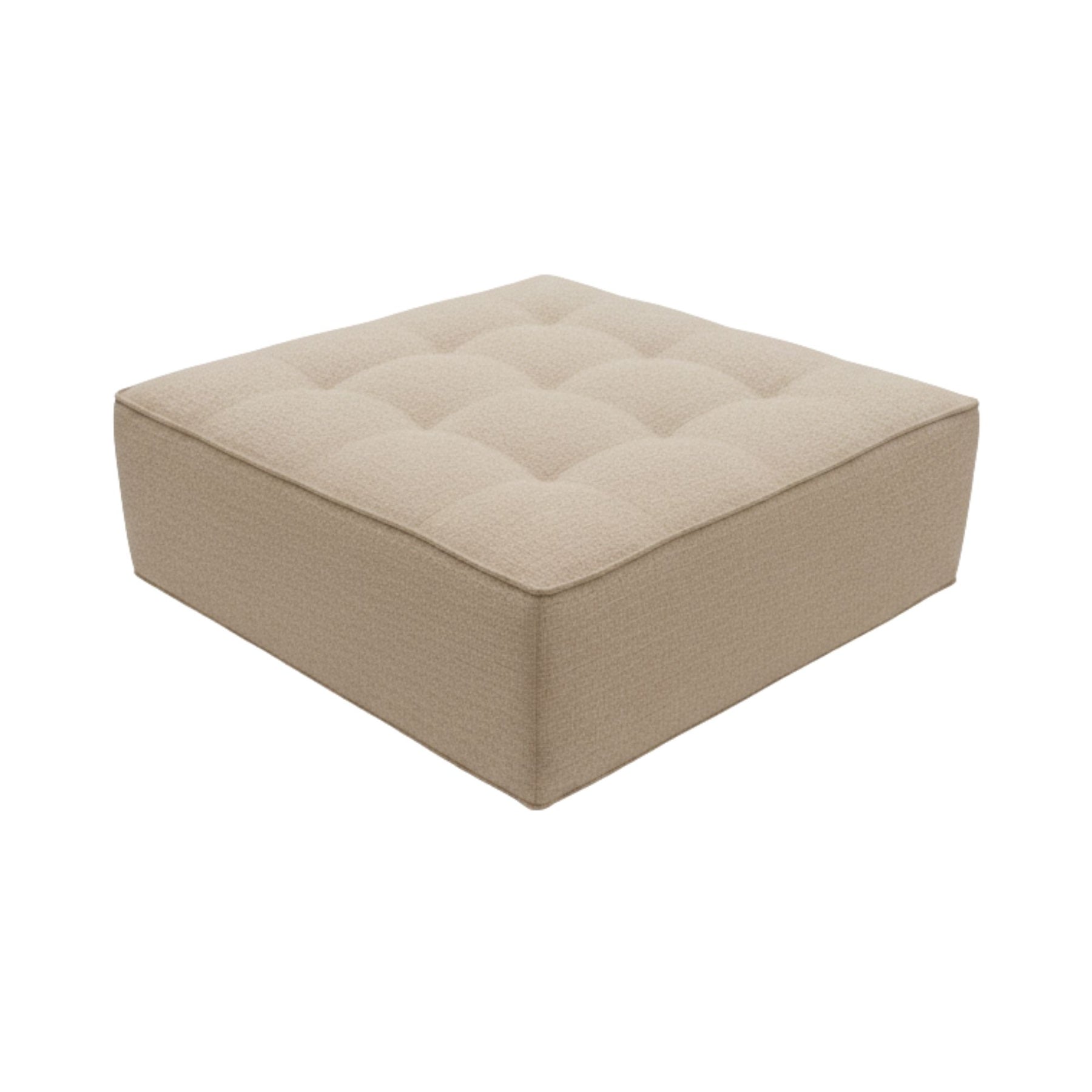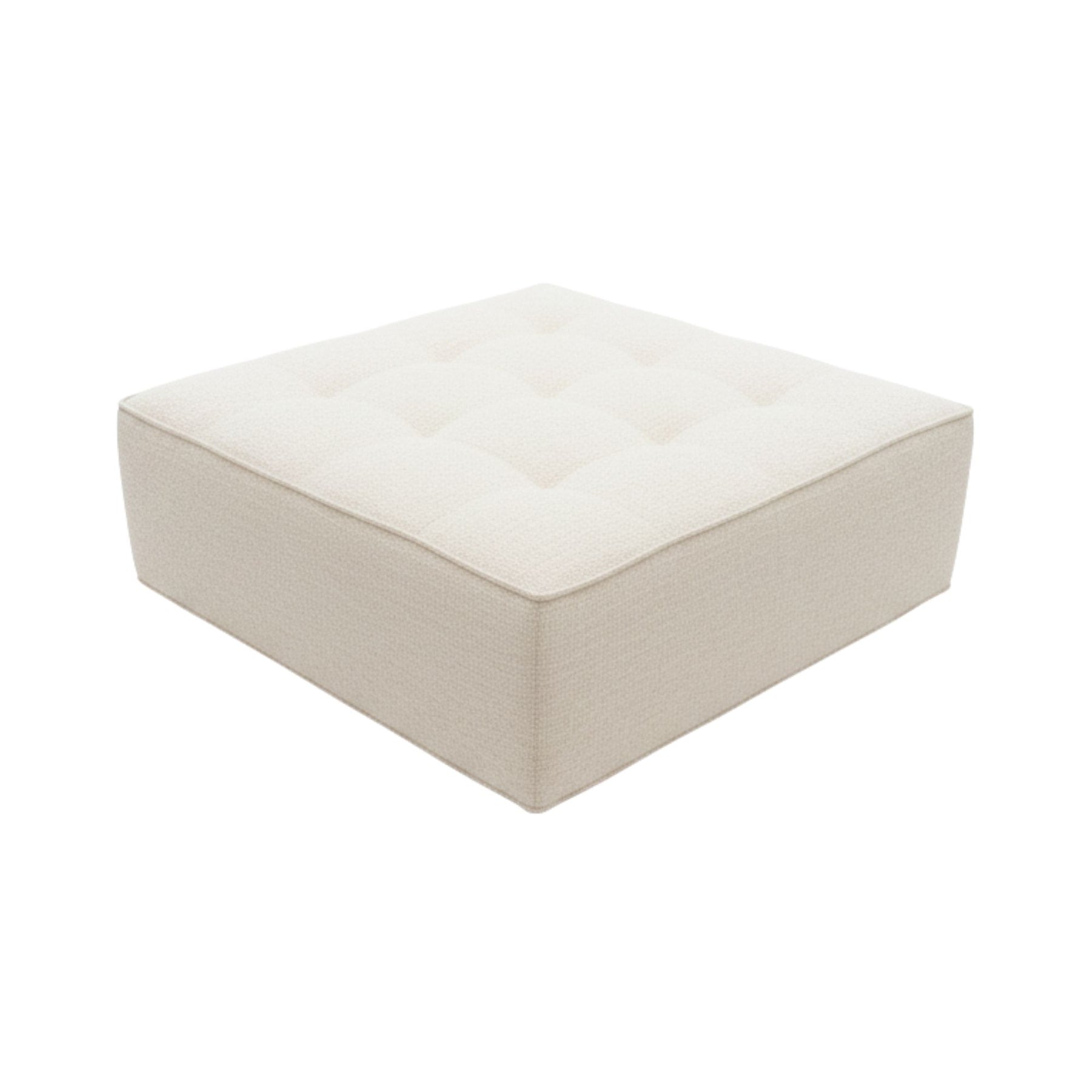 Angled view of a Hera square pouf showing seat and base detail.