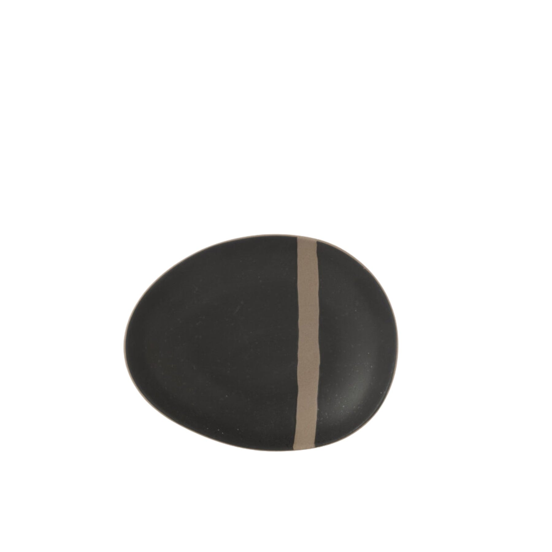 Arcai ceramic plate with matte black finish and natural accent line on white background.