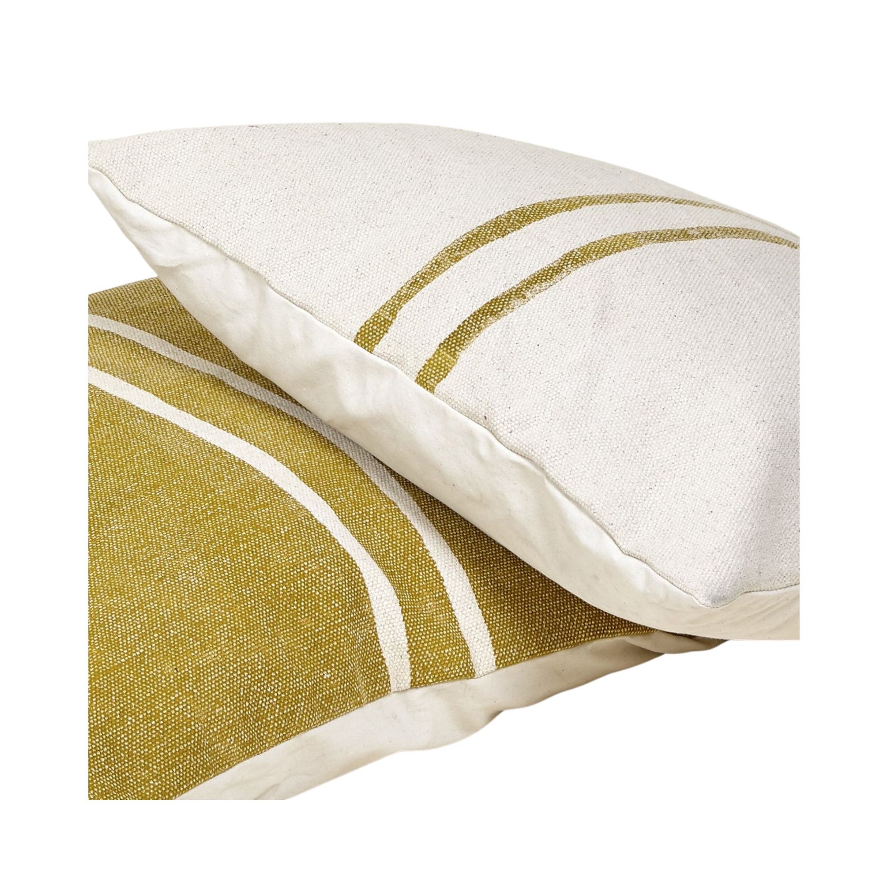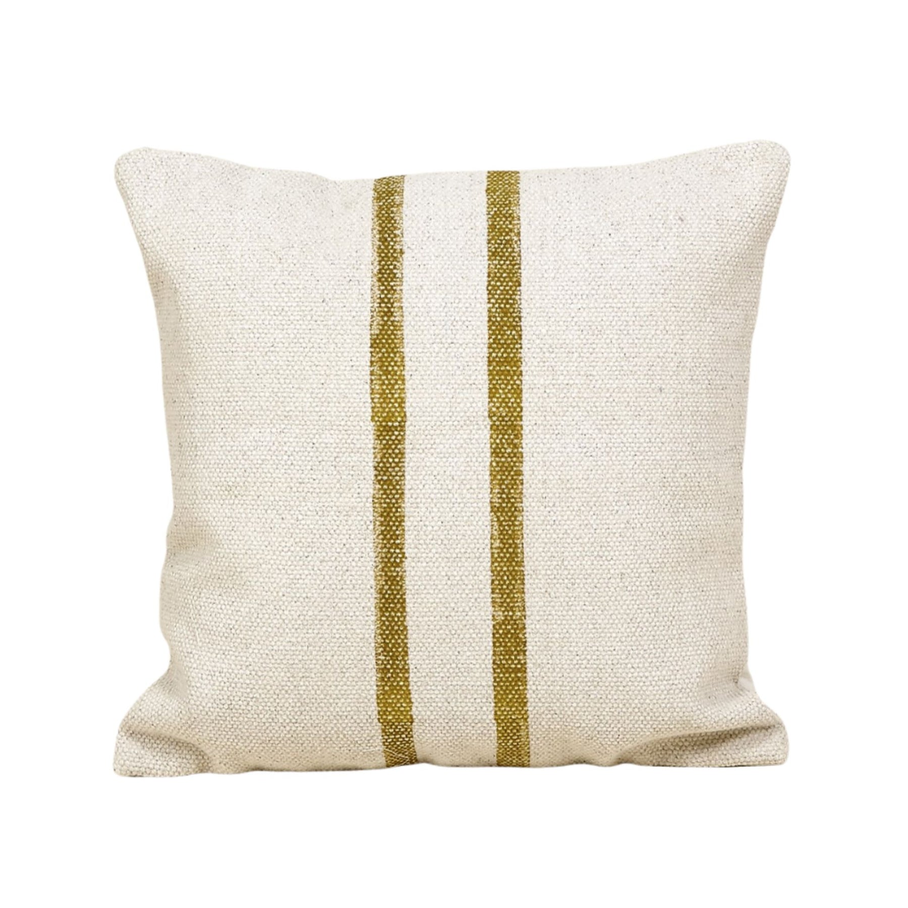 The Chandni Cushion combines warm mustard tones with soft ivory cotton, creating a balanced and elegant accent for sofas, beds, or lounge seating. Its handwoven striped design adds subtle rhythm and character while remaining versatile for both contemporary and bohemian interiors.