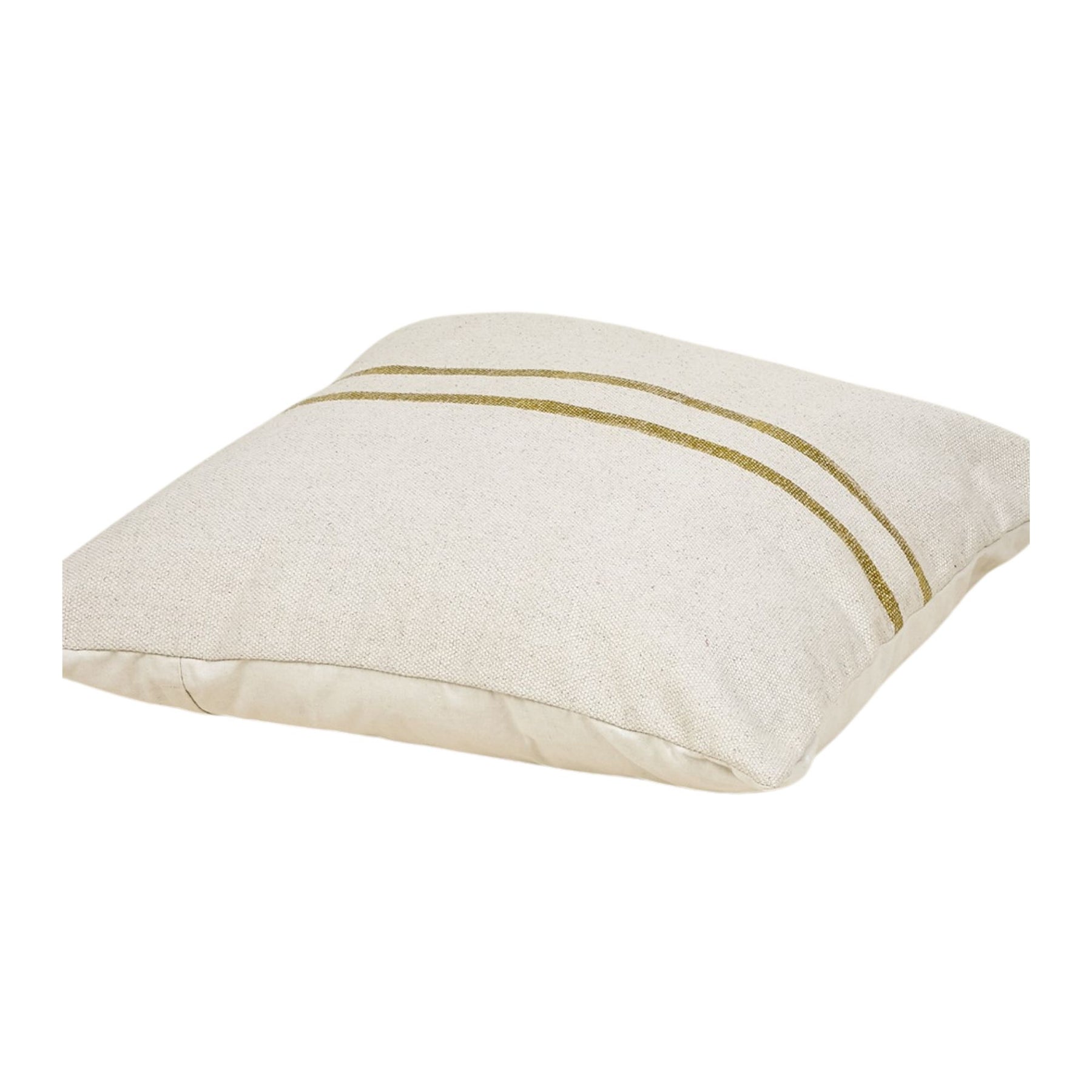 Side view of Chandni cushion ivory/mustard highlighting handwoven cotton fabric. 80x80cm