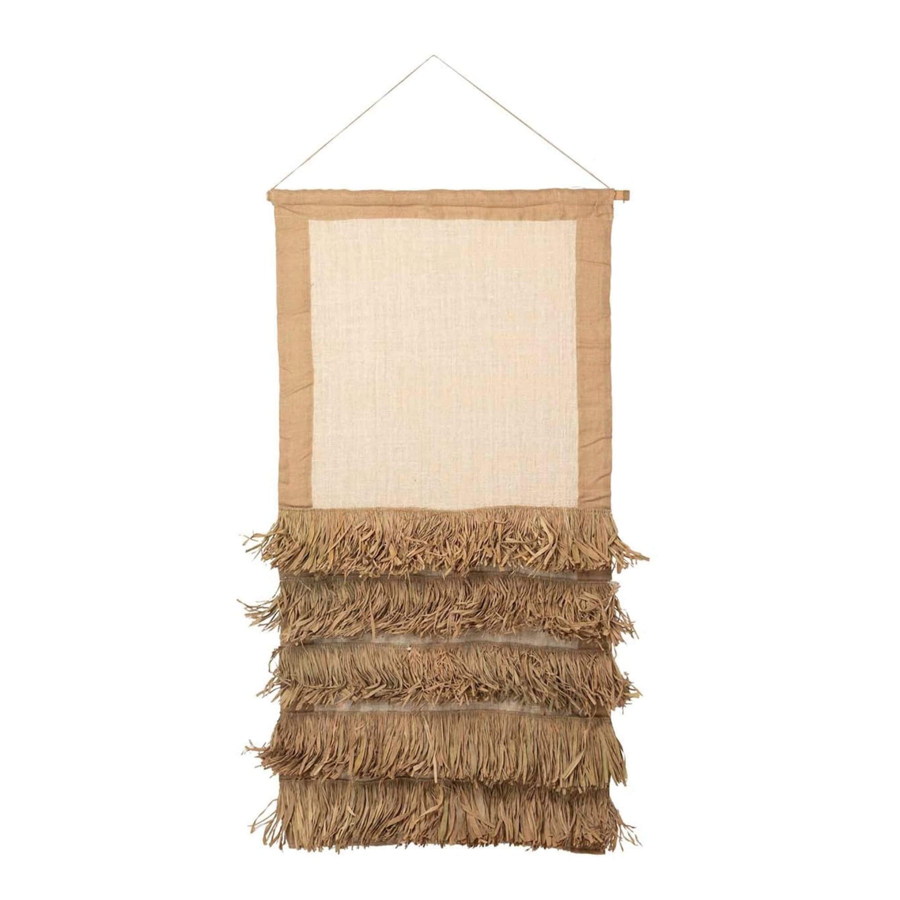 Natural fiber wall curtain with layered fringe and shell accents from the Badimo Collection.