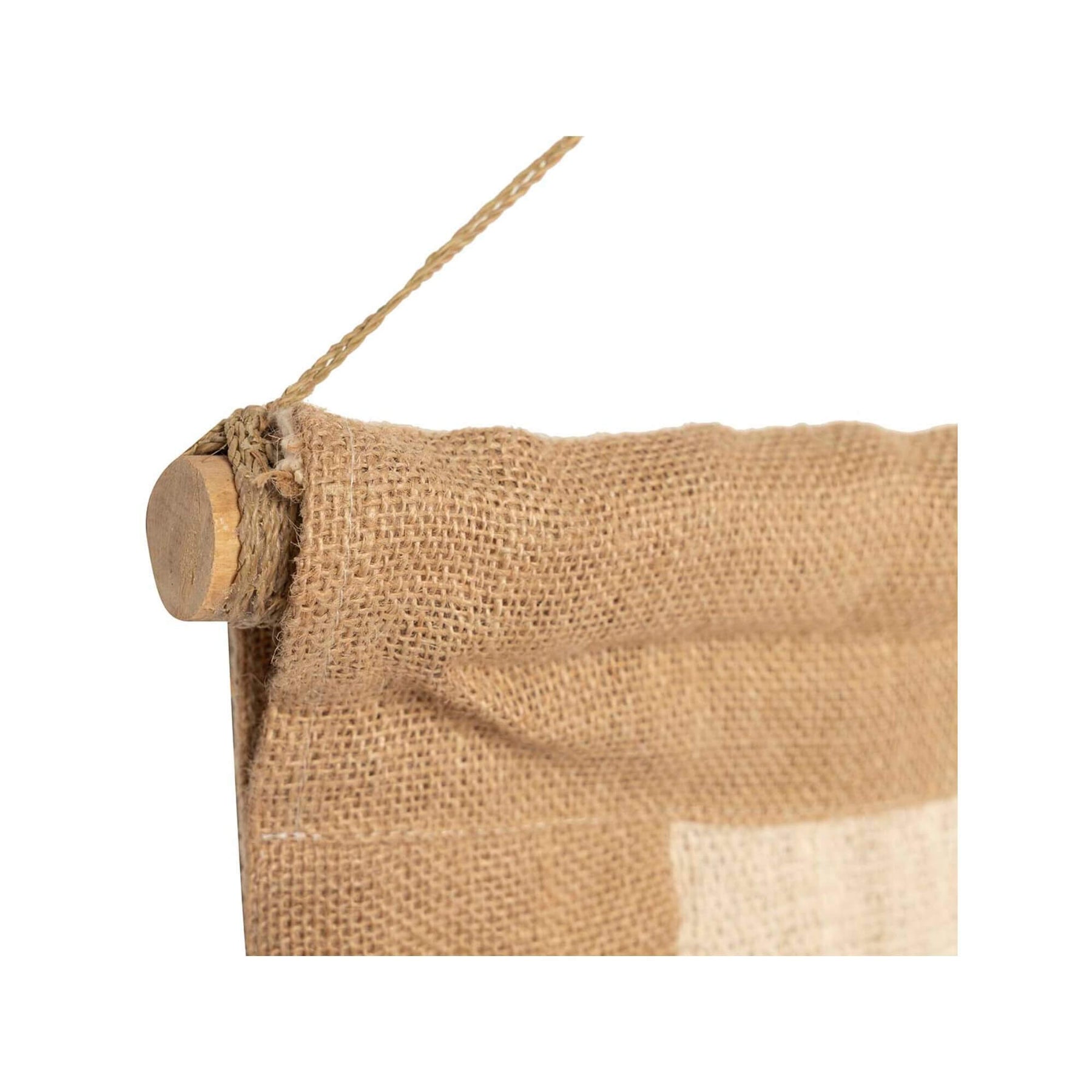 Close-up of handcrafted Badimo wall deco curtain showing woven texture and hanging cord.
