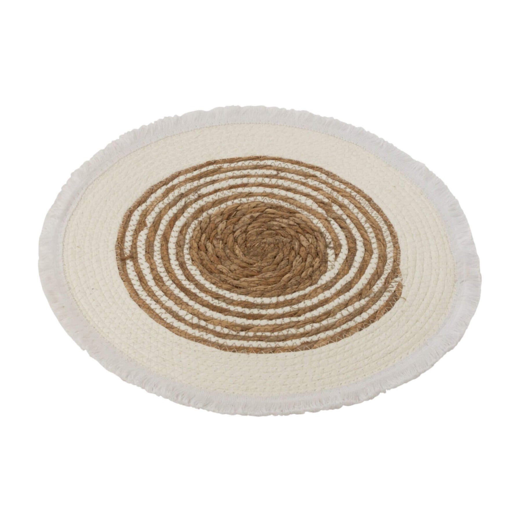 Top view of Hulhu Grass Table Mat in natural and white concentric pattern.