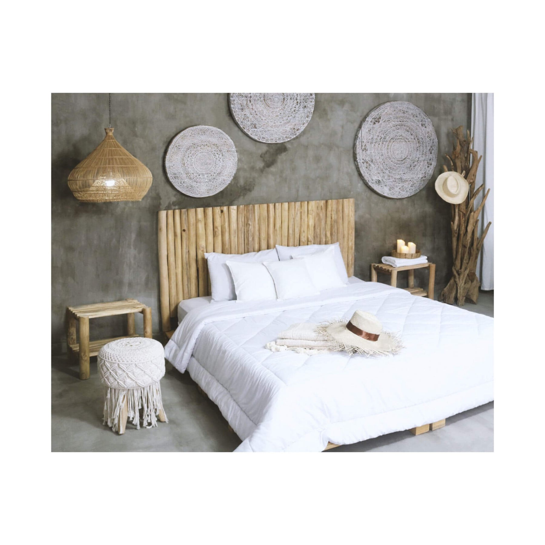 The Nikko Headboard embodies the serene beauty of nature with its handcrafted teak wood branches. Each piece is thoughtfully arranged to highlight the organic lines and tones of the wood, creating a calming and earthy statement in any bedroom. Perfect for those who seek balance between natural aesthetics and minimalist design.