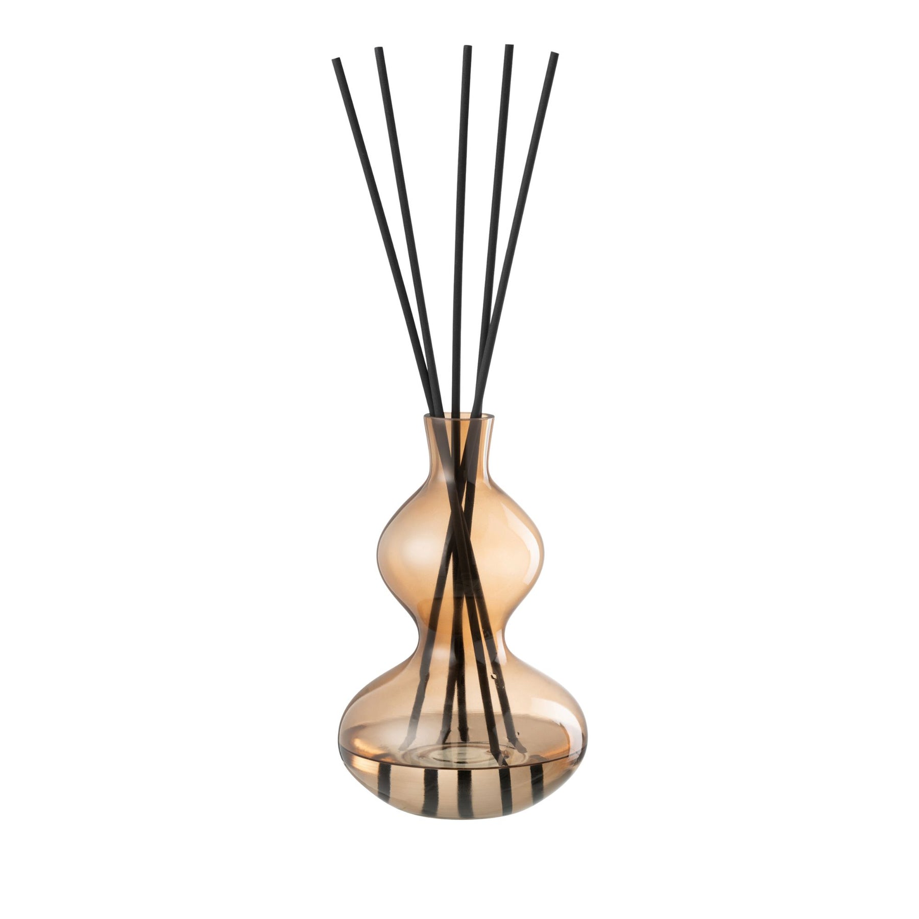 Nordic Vetiver Fragrance Diffuser in amber glass with black reeds, size comparison of both models.