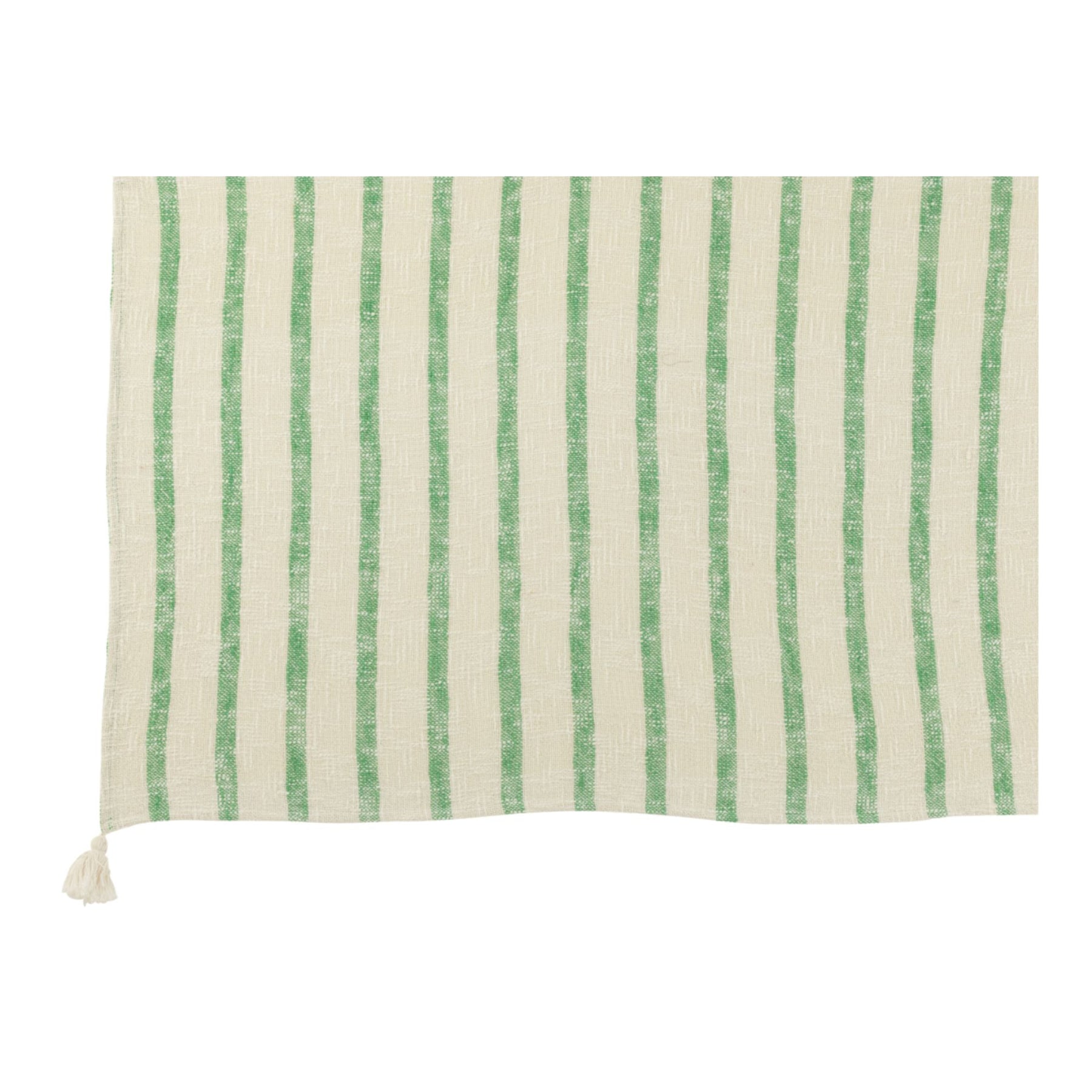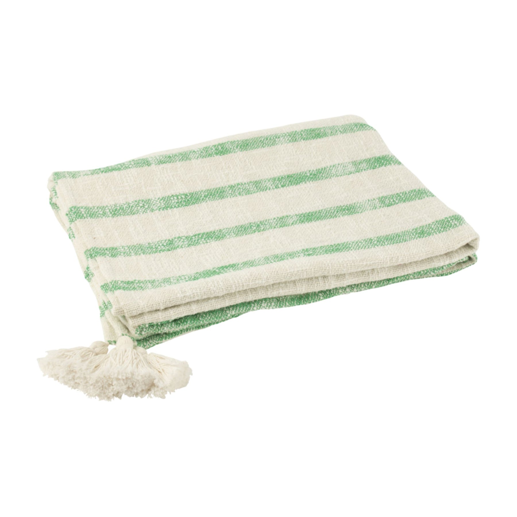Light and breezy, the Alga Plaid brings a fresh pop of green stripes to sofas, reading nooks, and bedroom layers. Soft to the touch with playful corner tassels, this reversible throw pairs a striped side with a wide-band side for easy styling.