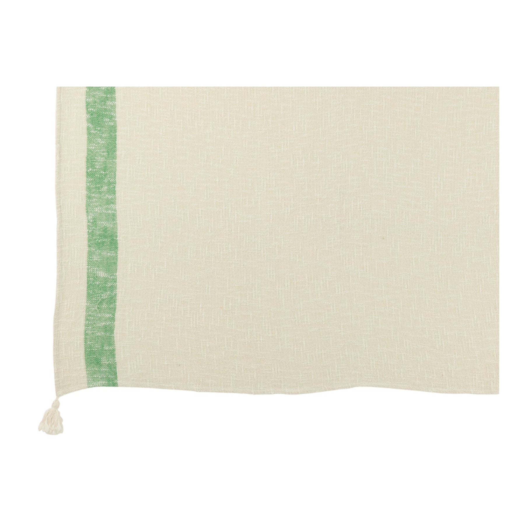 Folded Alga Plaid displaying the wide green band version with tassels.
